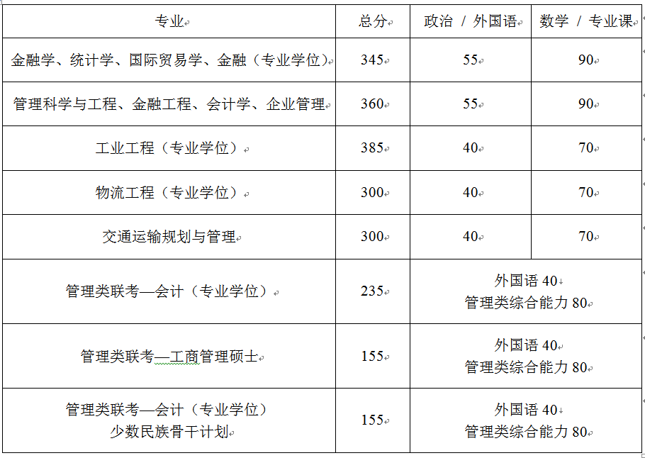 筆試和面試成績不及格者(MPAcc類考生,政治理論筆試、專業課筆試、面試成績任一項低于60分;其他類型考生,專業面試成績低于180分)不予錄取。