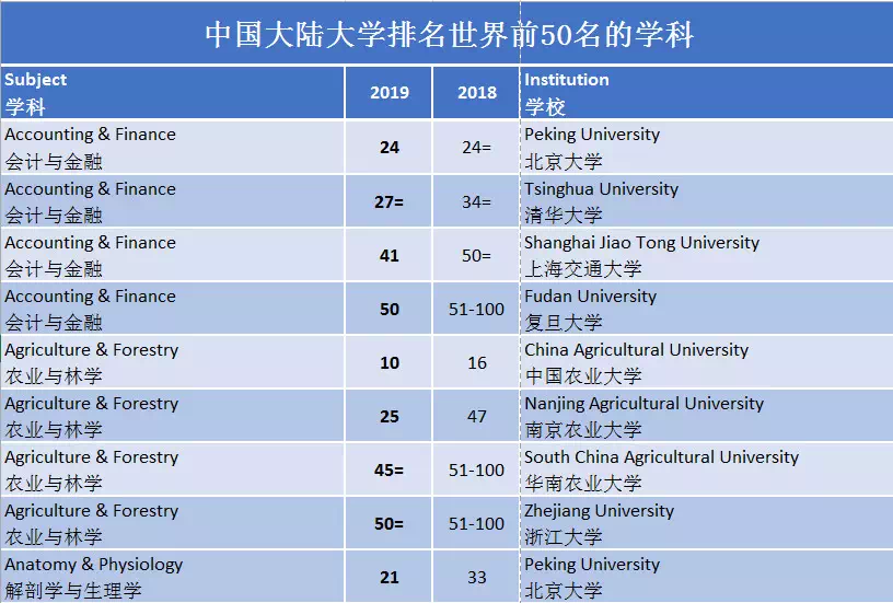 MPAcc備考網今天為同學帶來的是《2019QS大學學科排名重磅發布》的消息:全球關注度最高的QS世界大學最新一期學科排名結果公布!中國大陸大學中,有96個科系排名在全球前50名,比2018年多了9個科系。此外,中國農業大學還首次進入世界前10名(第10名),清華大學和北京大學也都有學科進入了世界前十。