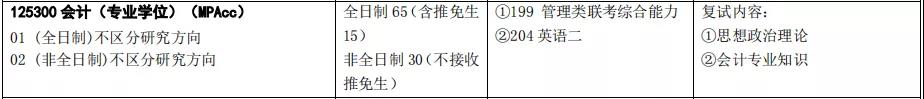 2021年MPAcc計劃招生全日制65人,其中含推免人數為15人;非全日制30人(不接收推免生)。
