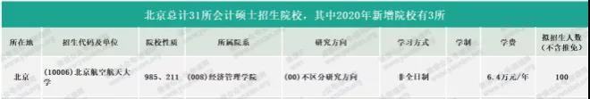 北京航空航天大學2021年非全日制會計專碩計劃招生100人(不含推免)。