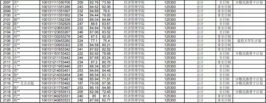 非全日制錄取平均分:208.77分