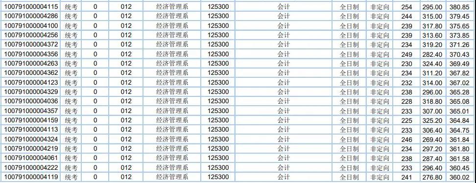 非全日制錄取最高分:231分