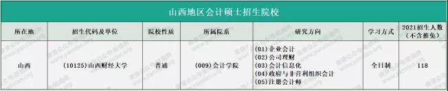 山西財經大學2021年會計專碩全日制計劃招生118人(不含推免)