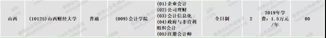 山西財經大學2019年全日制會計專碩學制學費:學制為2年,學費為1.5萬元/年
