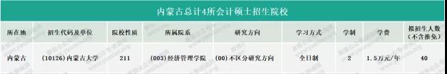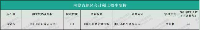 內蒙古大學2021年全日制會計專碩計劃招生45人(不含推免)