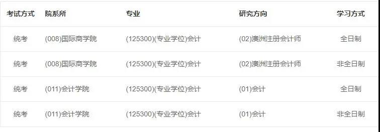 東北財經大學2021年會計學院會計專碩研究方向為(01)會計,國際商學院會計專碩研究方向為(02)澳洲注冊會計師