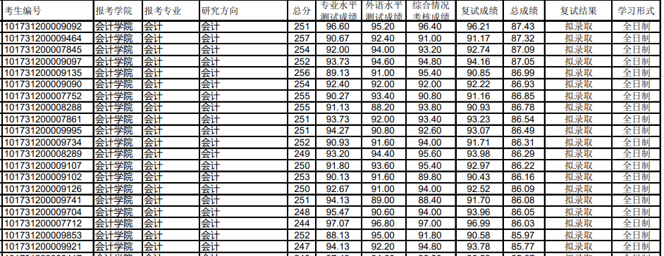 非全日制錄取最高分:222分