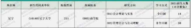 遼寧大學2021年全日制會計專碩計劃招生14人,計劃招生