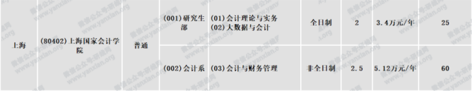 上海國家會計學院2020年全日制會計專碩學制學費:學制為2年,學費為3.4萬元/年非全日制會計專碩學制學費:學制為2.5年,學費為5.12萬元/年