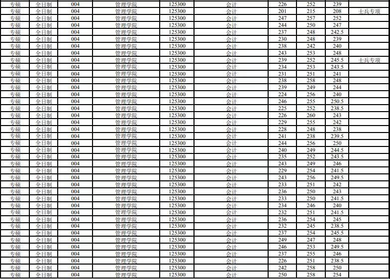 上海大學管理學院2021年會計專碩復試分數線為:216/92/46