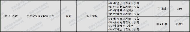 南京財經大學2021年會計專碩全日制計劃招生130人非全日制未招生