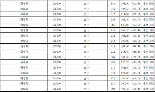 非全日制錄取平均分:220分