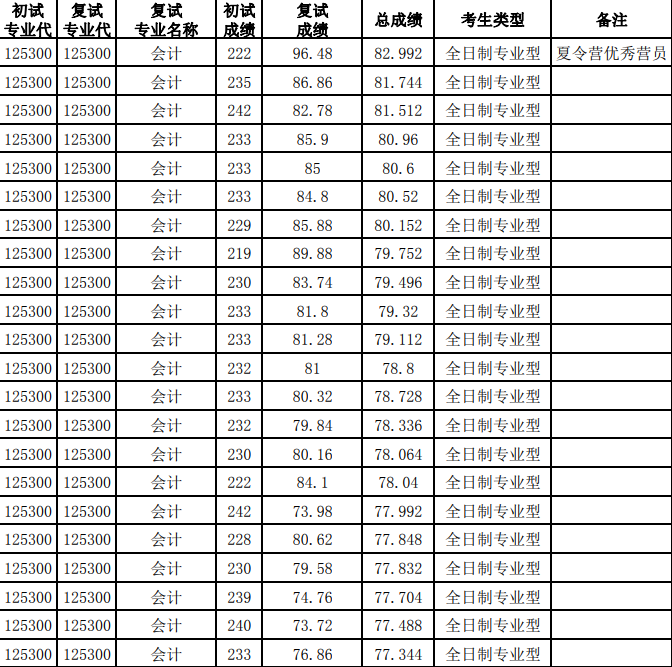非全日制錄取最高分:235分