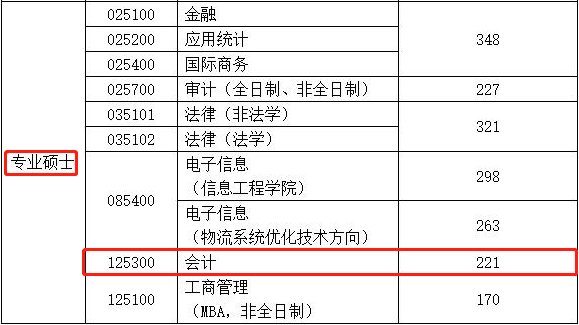 安徽工業大學2021年會計專碩復試分數線為:211