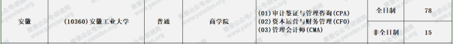 安徽工業大學2021年會計專碩全日制計劃招生78人非全日制計劃招生15人
