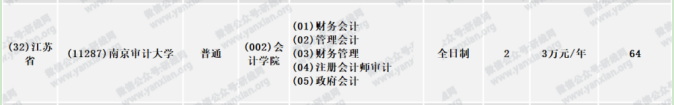 南京審計大學2020年全日制會計專碩學制學費:學制為2年,學費為3萬元/年
