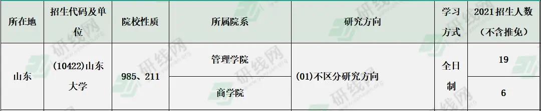 山東大學2021年管理學院全日制會計專碩計劃招生19人商學院全日制會計專碩計劃招生6人
