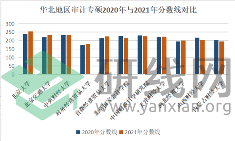 | 華北地區(qū)審計(jì)專(zhuān)碩2020年與2021年分?jǐn)?shù)線對(duì)比 | ||