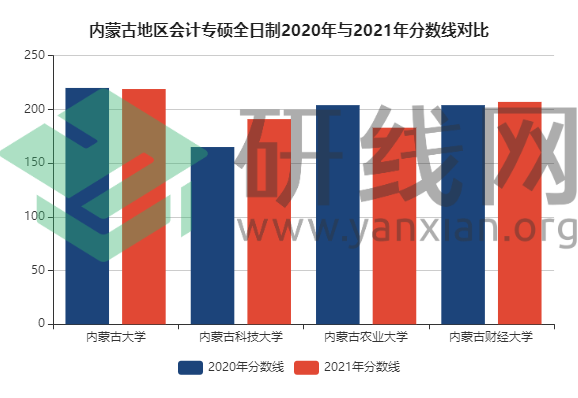| 內(nèi)蒙古地區(qū)會計專碩全日制2020年與2021年分數(shù)線對比 | ||
