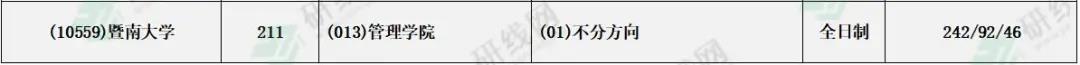 暨南大學2021年會計專碩復試分數線為242/92/46