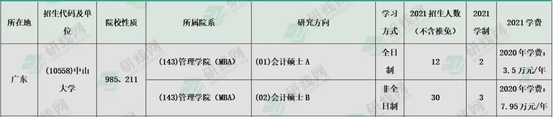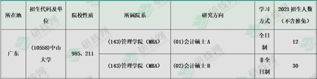 中山大學2021年全日制會計專碩計劃招生12人會計專碩計劃招生