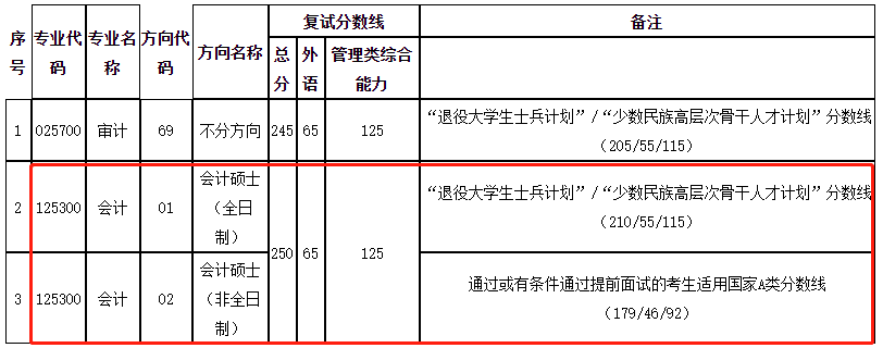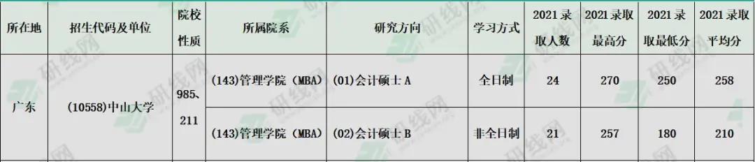 中山大學2021年會計專碩復試分數線:250/125/65,非全日制提前批分數線179/92/46