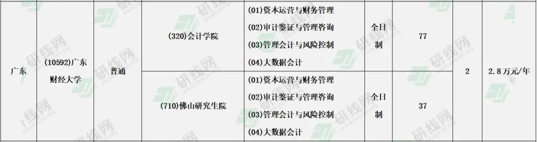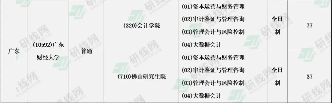 廣東財經大學2021年會計學院全日制會計專碩計劃招生77人佛山研究生院全日制會計專碩計劃招生37人