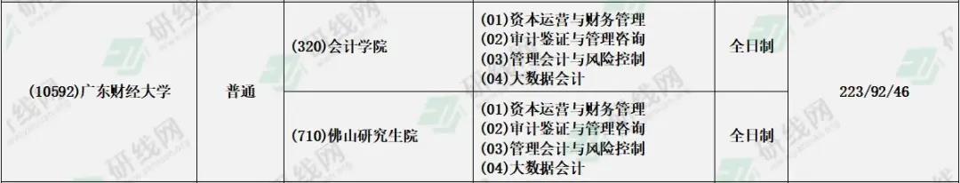廣東財經大學2021年會計專碩復試分數線:223/92/46