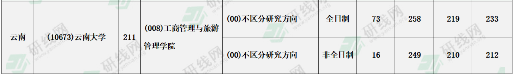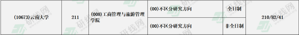 云南大學2021年全日制和非全日制會計專碩復試分數線:210/82/41