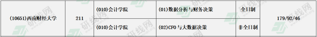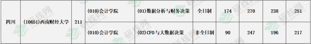 西南財經大學2021年全日制和非全日制會計專碩復試分數線:179/92/46