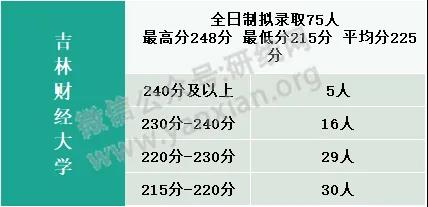吉林財經大學審計全日制擬錄取人數75人,最高分248分,最低分215分,平均分225分。
