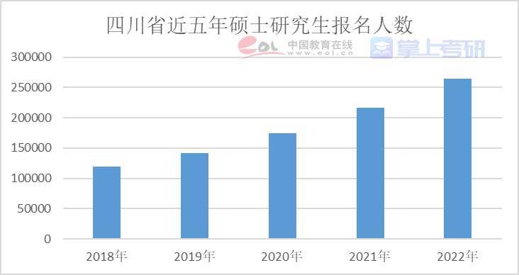 2022年四川省碩士研究生報名人數為26.5萬人,較2021年增加了4萬余人,增幅為22%。
