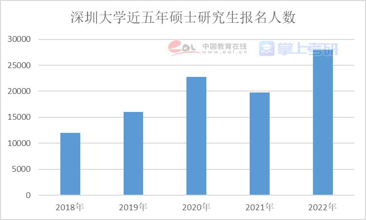 深圳大學2022年碩士研究生報名人數27966人,比2021年增長8231人,增長率為41.7%。