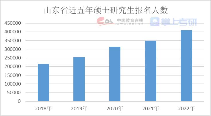 2022年山東省碩士研究生報名人數41萬人,較2021年增加了6.2萬人,增幅為17.8%。