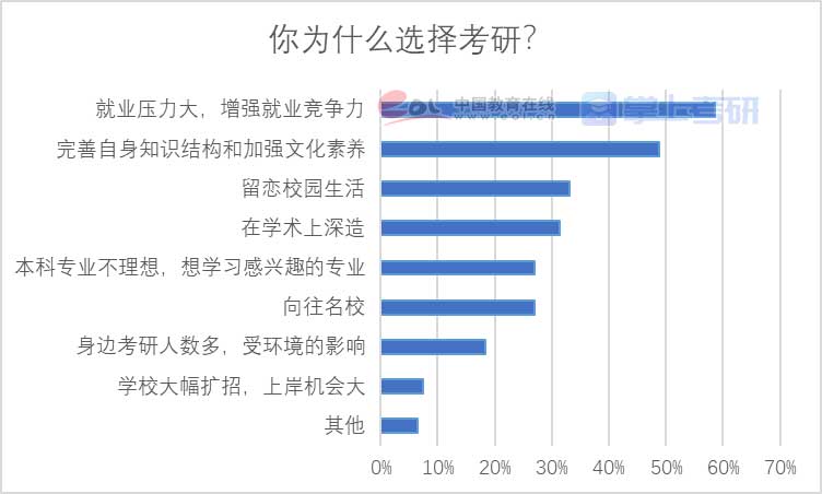 ② 近6成考生因就業壓力大選擇考研,想增強就業競爭力;