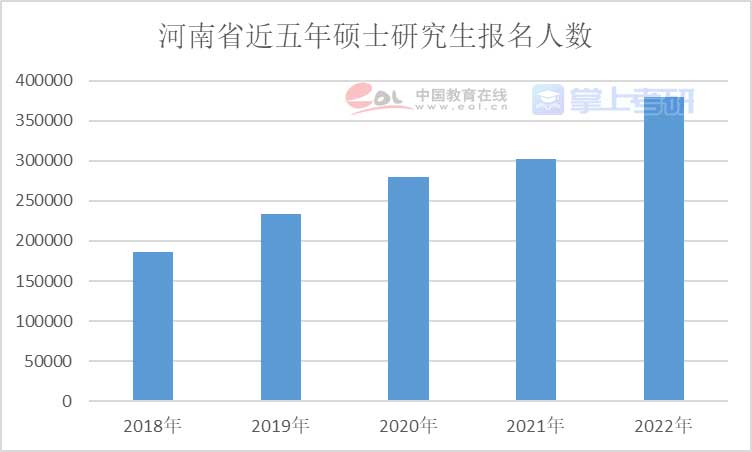2022年河南省碩士研究生報名人數為37.9萬人,較2021年增加了7.7萬人,增幅為25.5%。
