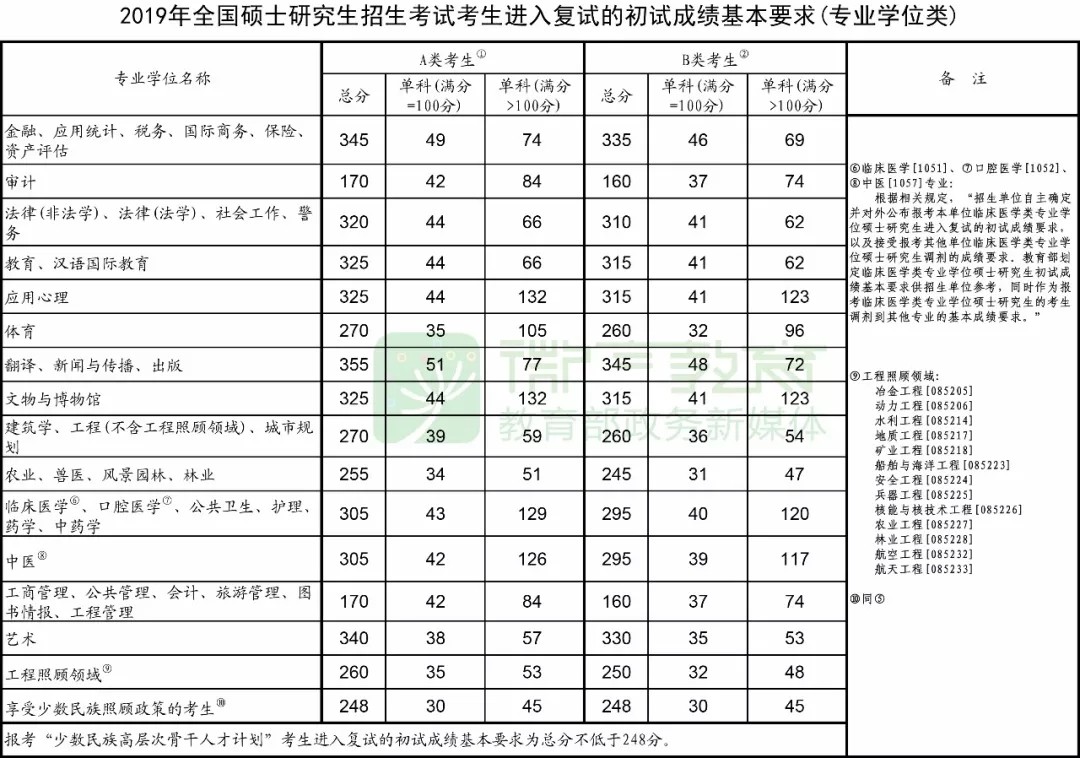 2019年MPAcc國家線 |全國碩士研究生招生考試考生進入復試的初試成績基本要求