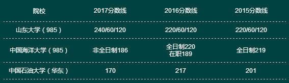 近三年全國MPACC院校復試分數線一覽表(華東篇)