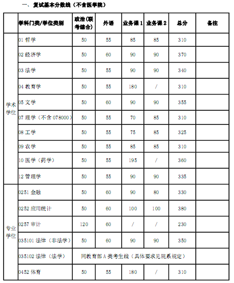 一、復試基本分數線(不含醫學院)