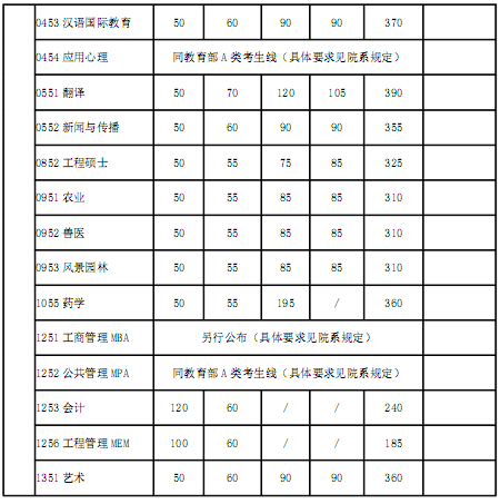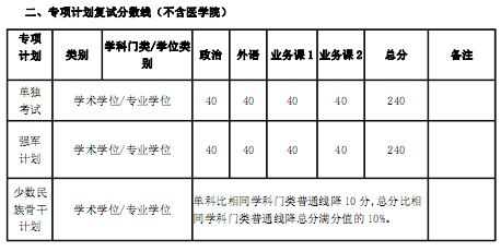 二、專項計劃復試分數線(不含醫學院)