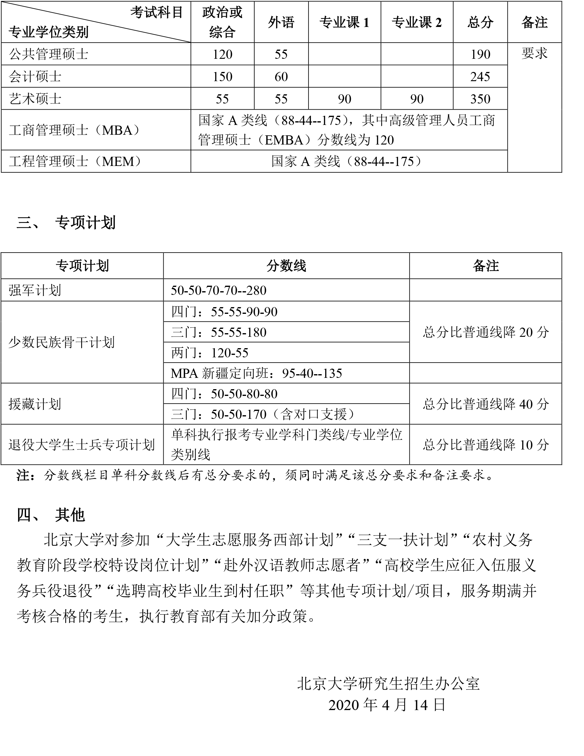 2020會計碩士(MPAcc)分數線:北京大學2020年碩士研究生復試基本分數線公布!