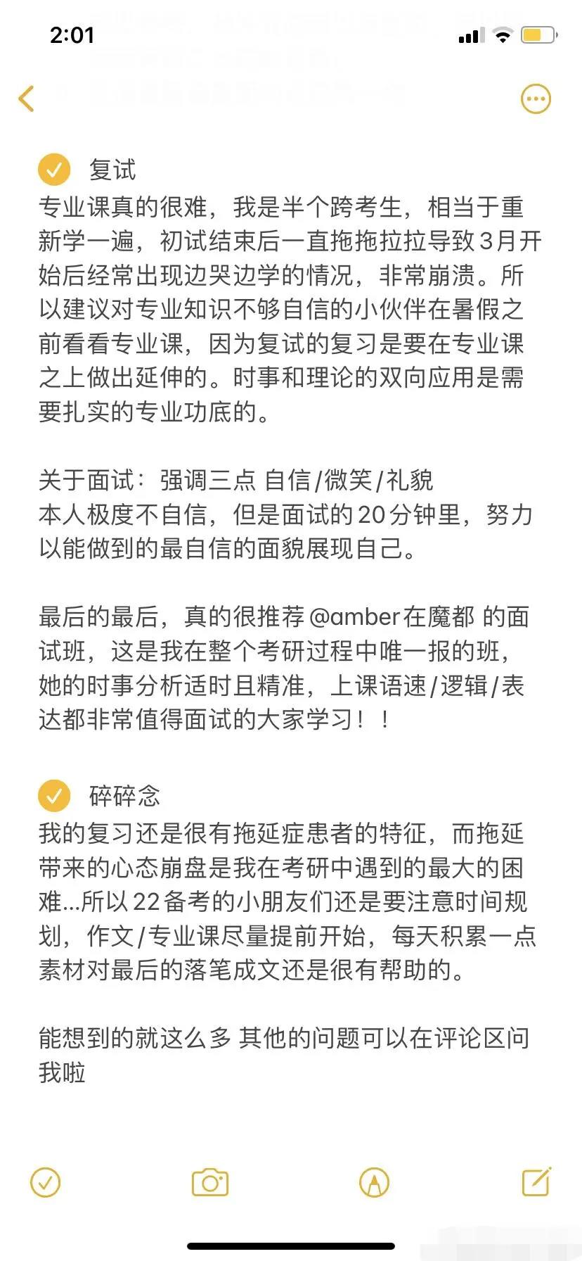 我的復習還是很有拖延癥患者的特征,而拖延帶來的心態崩盤是我在考研中遇到的最大的困難。所以22備考的小朋友們還是要注意時間規劃,作文/專業課盡量提前開始,每天積累一點素材對最后的落筆成文還是很有幫助的。