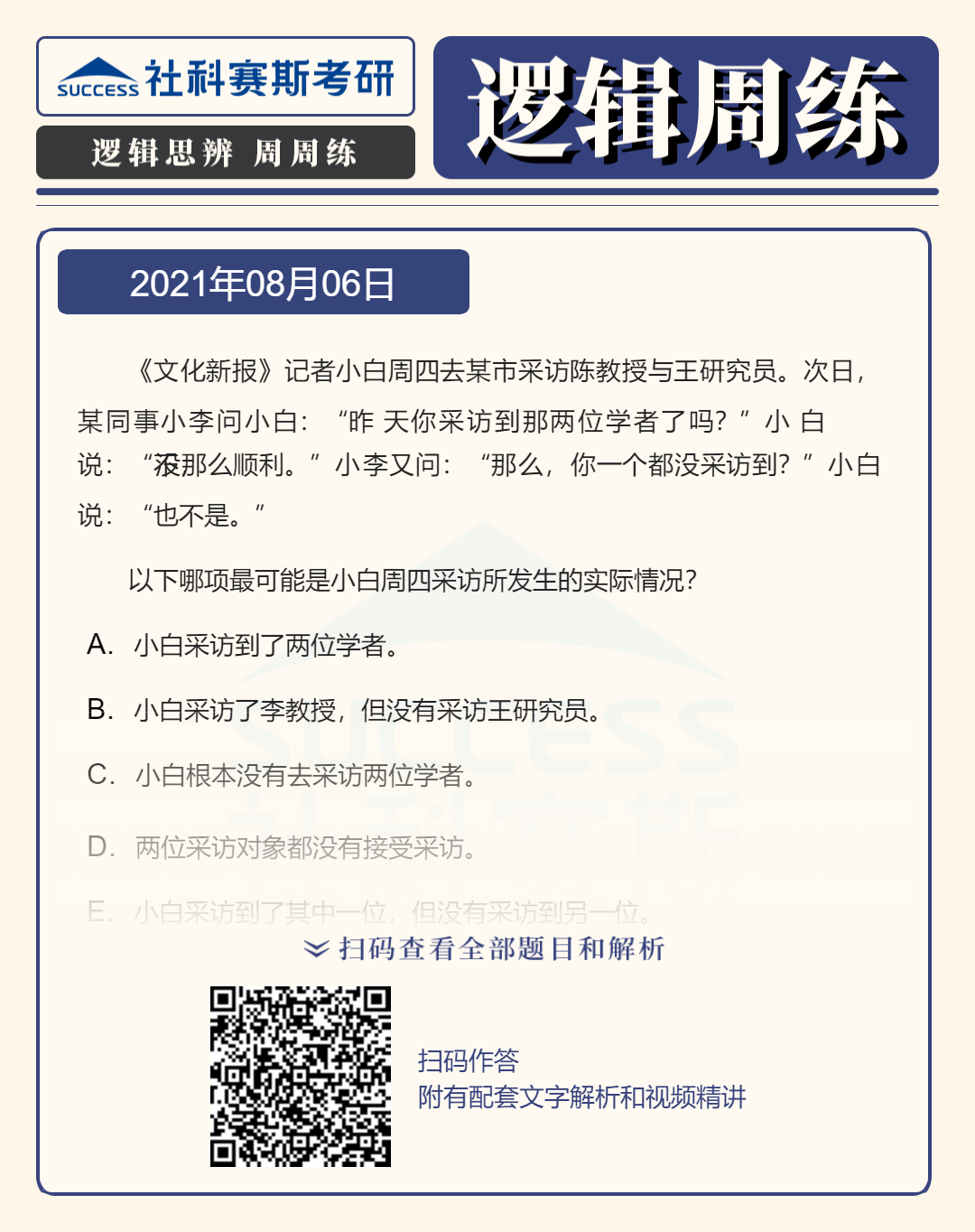 往期回顧:2022MPAcc邏輯備考:8月4日邏輯專項(xiàng)練習(xí)及答案