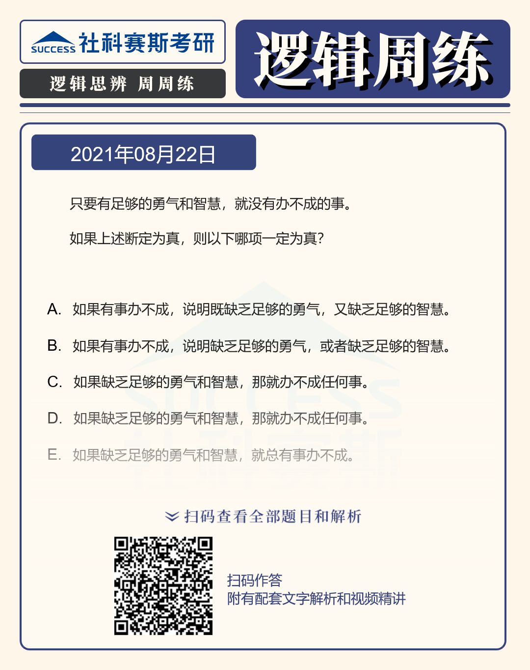 邏輯思辨周周練,考研邏輯專項練習,攻克邏輯難關!今天小編整理了“2022MPAcc邏輯備考:8月22日邏輯專項練習及答案”,希望能對廣大考生有所幫助!
