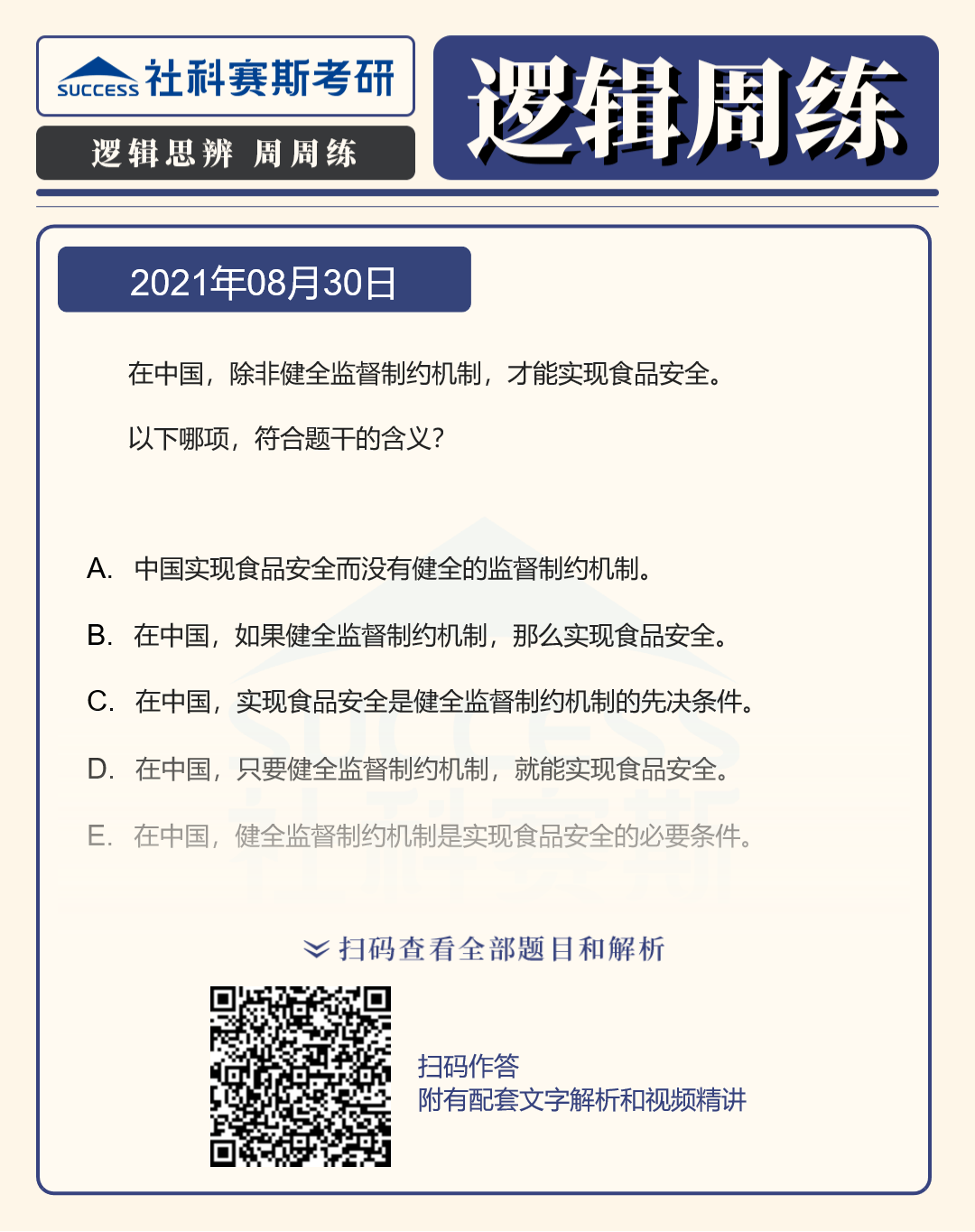 邏輯思辨周周練,考研邏輯專項練習,攻克邏輯難關!今天小編整理了“2022MPAcc邏輯備考:8月30日邏輯專項練習及答案”,希望能對廣大考生有所幫助!