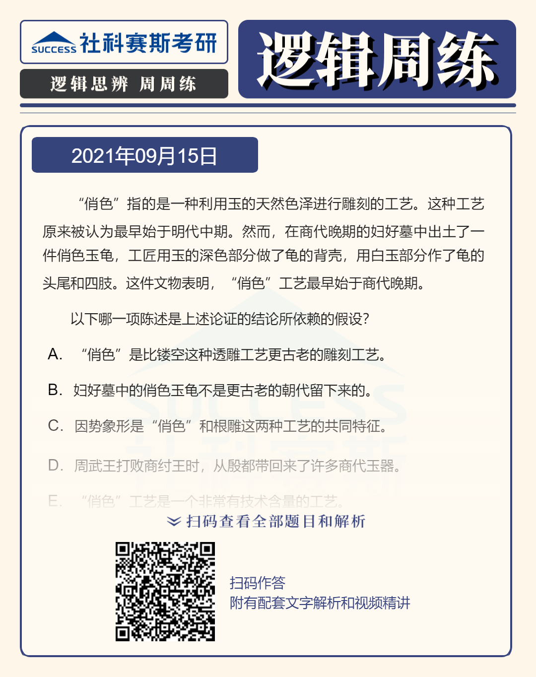 以上就是小編為大家整理“2022MPAcc邏輯備考:9月15日邏輯專項練習及答案”的全部內容,希望各位考生堅持利用起來,想要獲取更多內容請持續關注本網站。