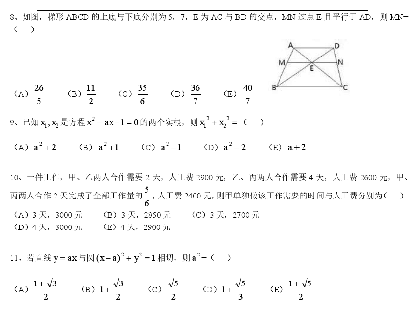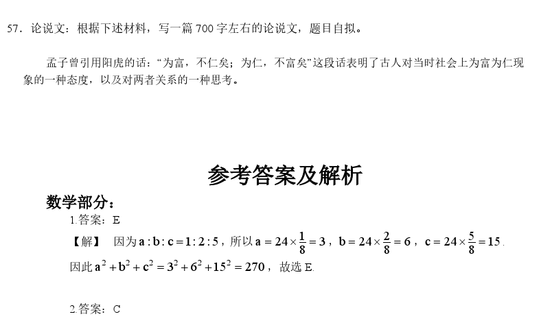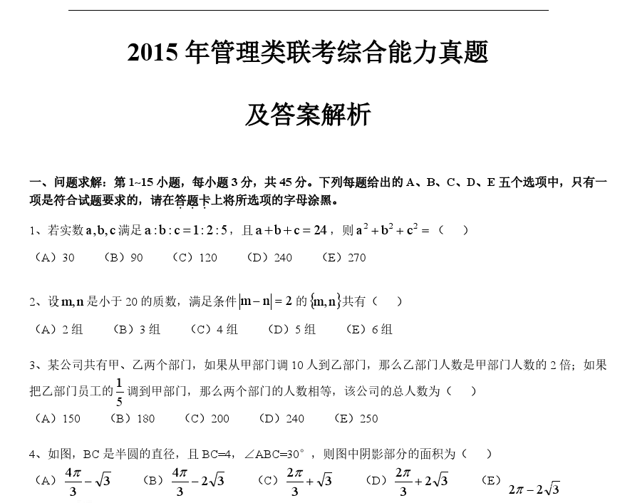 2015年全國碩士研究生考試管理類聯考真題及解析