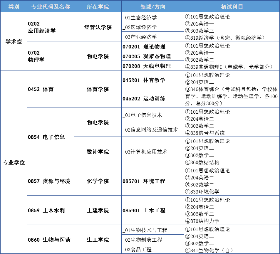 我校新增碩士學位授權一級學科2個,新增碩士專業授權點5個,相關專業信息及初試科目如下表,更具體的招生要求、專業目錄及參考書目、聯系方式詳見我校2023年碩士研究生招生簡章。