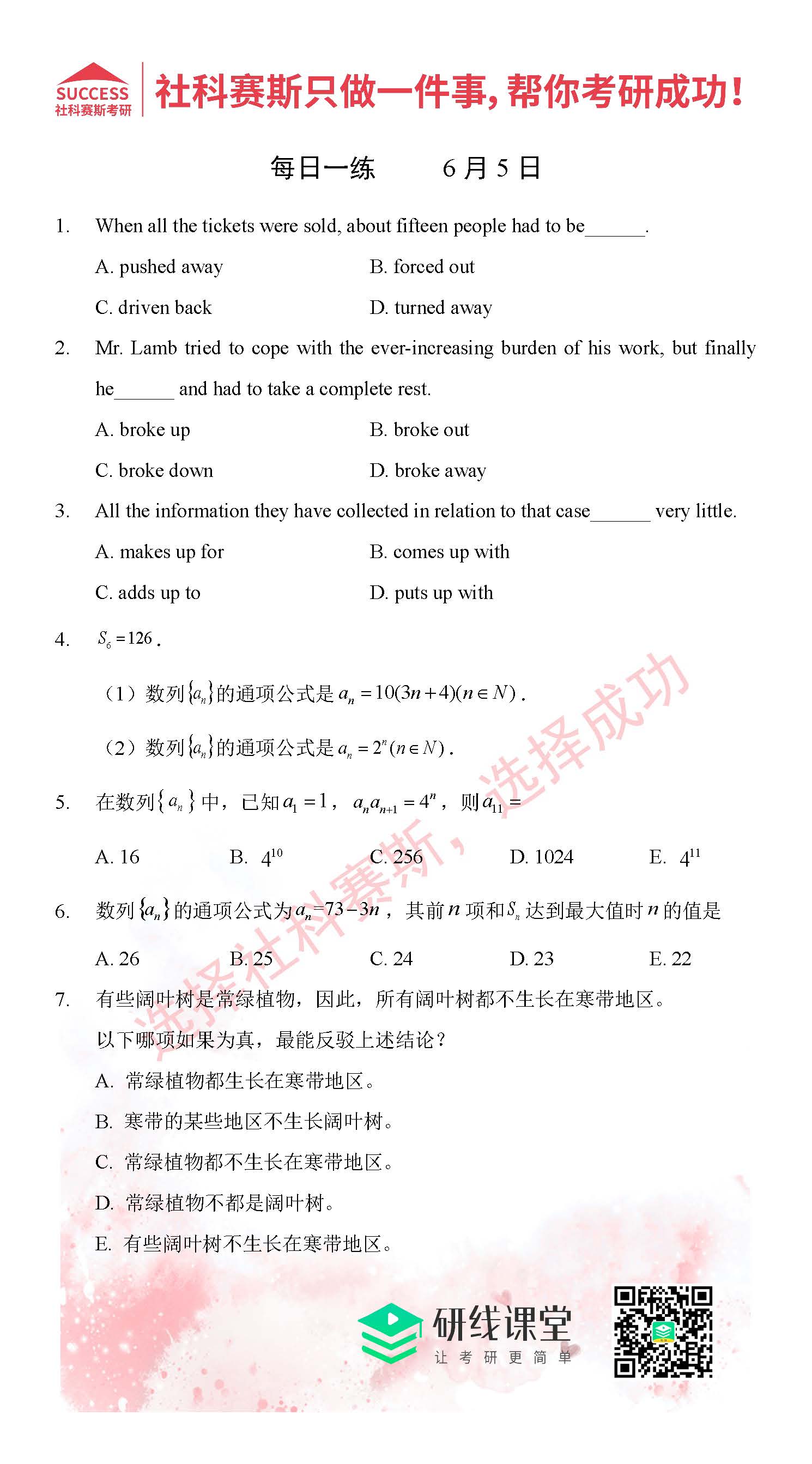 以上就是MPAcc備考網小編整理“2021MPAcc每日習題:管理類聯考6月5日精選習題分享(附答案)”的全部內容,希望下一個研究生就是你!