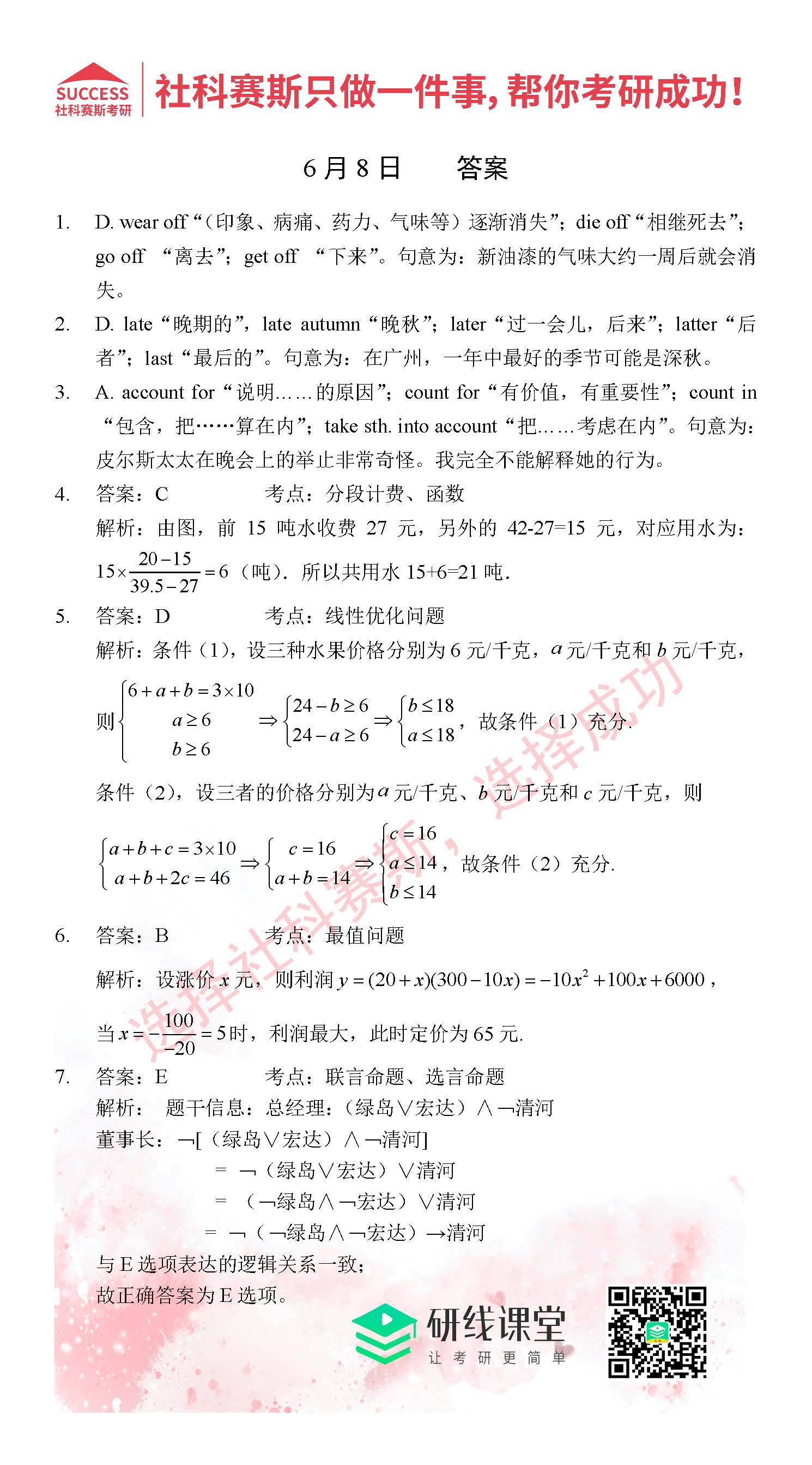 2021MPAcc每日習(xí)題:管理類聯(lián)考6月8日精選習(xí)題分享(附答案)